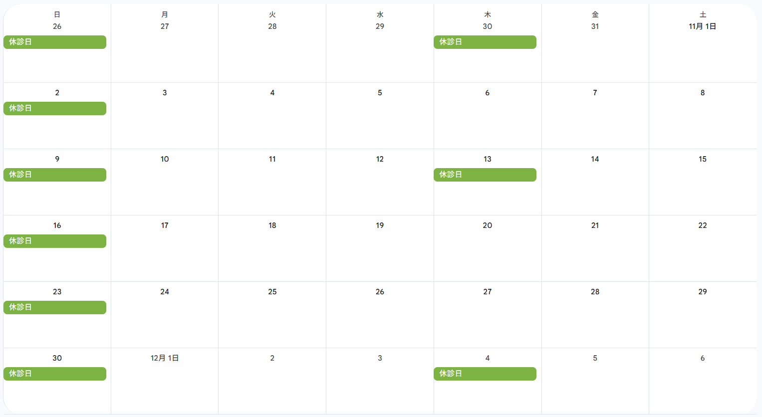 10/23(木)10/30(木)臨時休診日